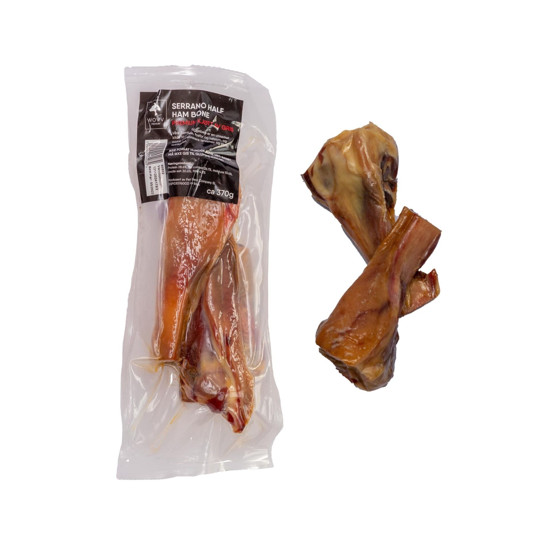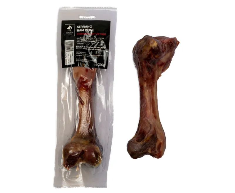 Wovv Serrano Mega Meaty Ham BoneSerrano Mega Meaty Skinkebein er et stort og kjøttfullt bein som passer for store hunder....