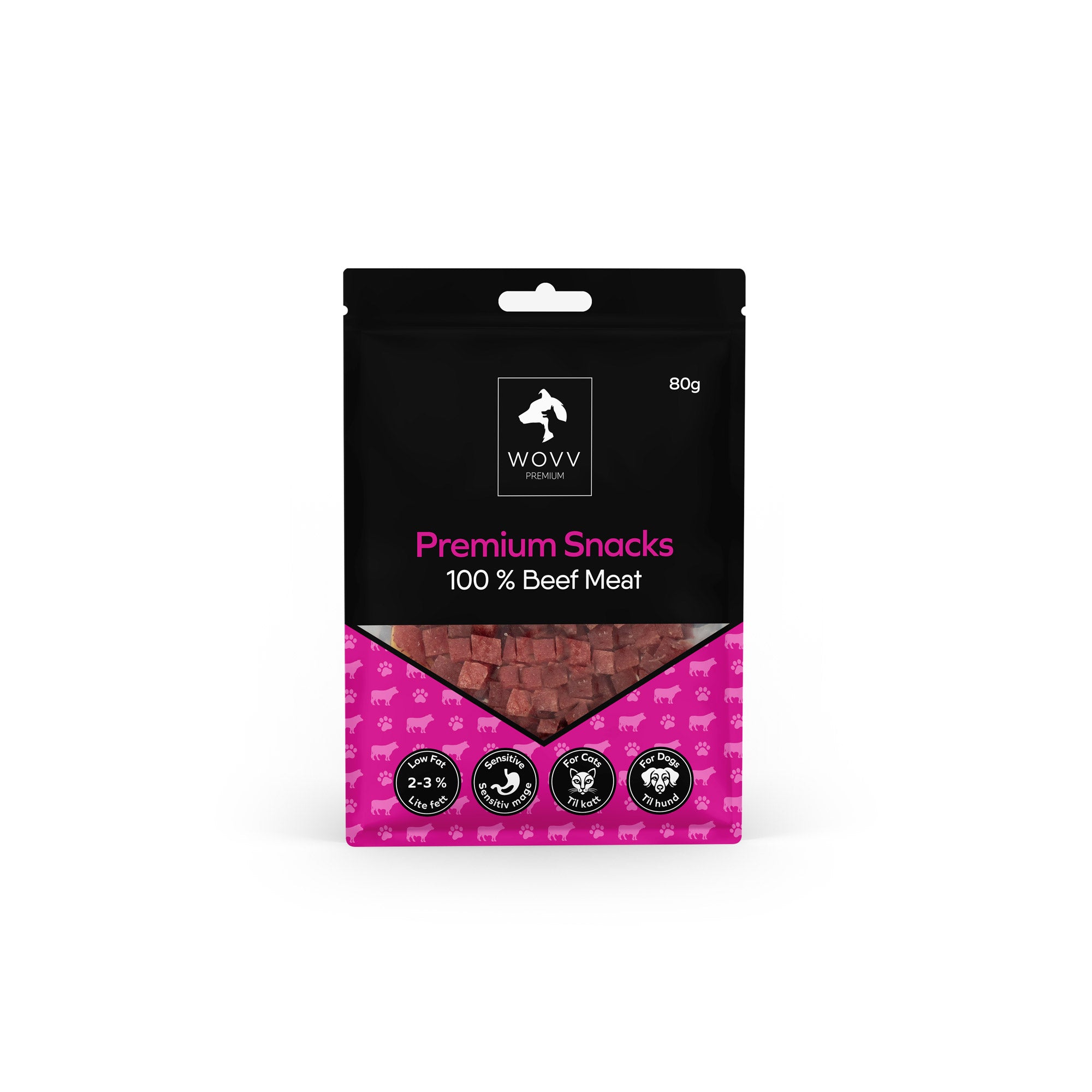 Wovv godbitene er laget av kjøtt i kvalitet beregnet for menneskekonsum og kommer i variantene And, Lam og Okse. Alle...