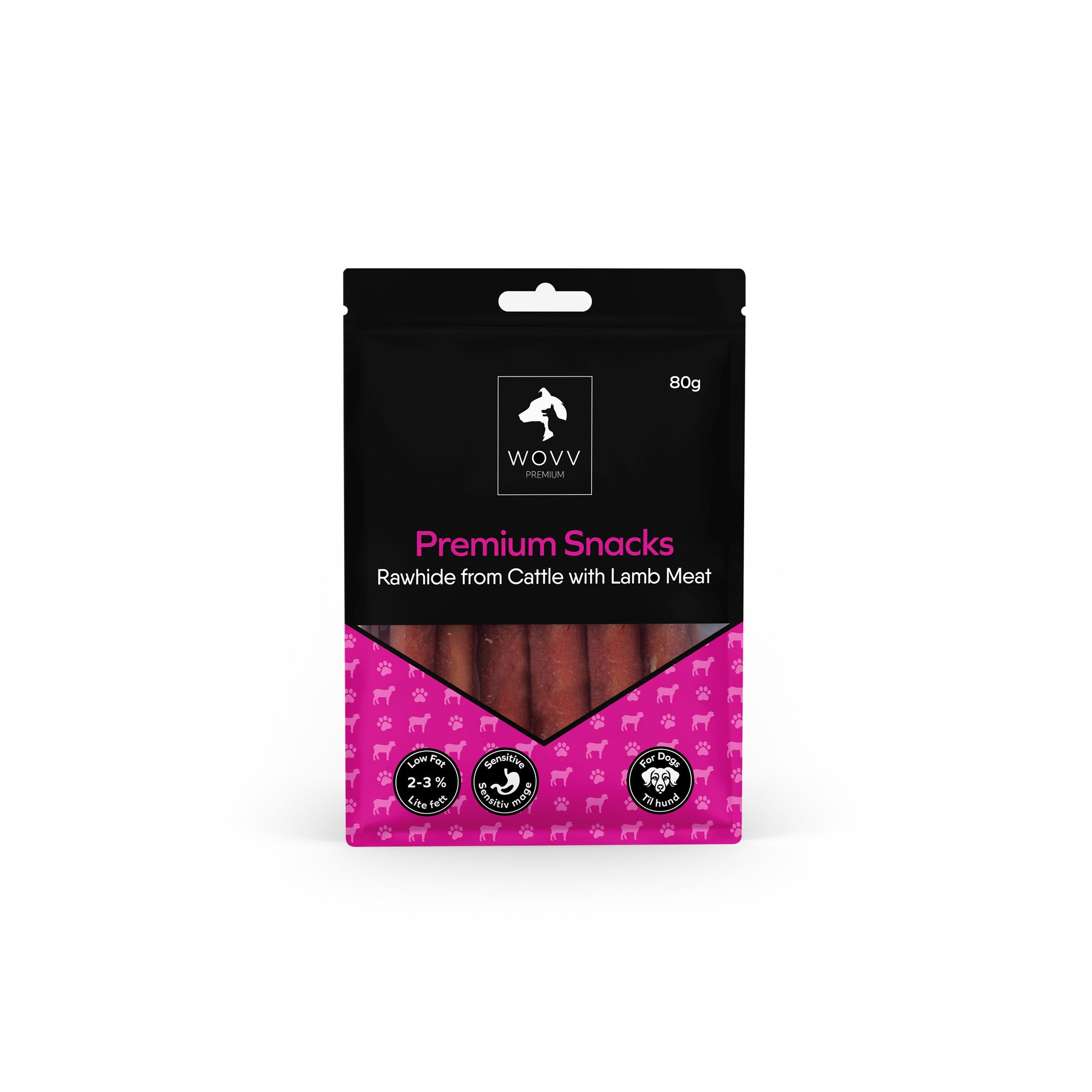 WOVV’s tyggepinner er en herlig miks av råhud av storfe snurret inn i rent lammekjøtt for å skape en godbit...