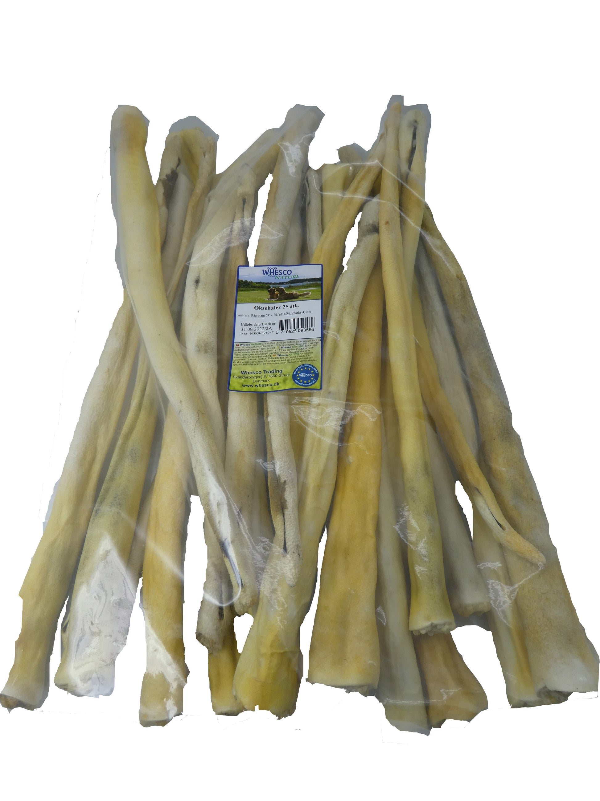 Vår tørkede oksehale (35–45 cm, 1 stk) er en 100 % naturlig hundesnacks med fast konsistens som gir ekstra lang tyggetid. Den grove strukturen tilfredsstiller hundens naturlige tyggeinstinkt, bidrar til å rense tennene og gir samtidig en smakfull og næringsrik belønning. Perfekt for hunder som elsker et kraftig og robust tyggebein.